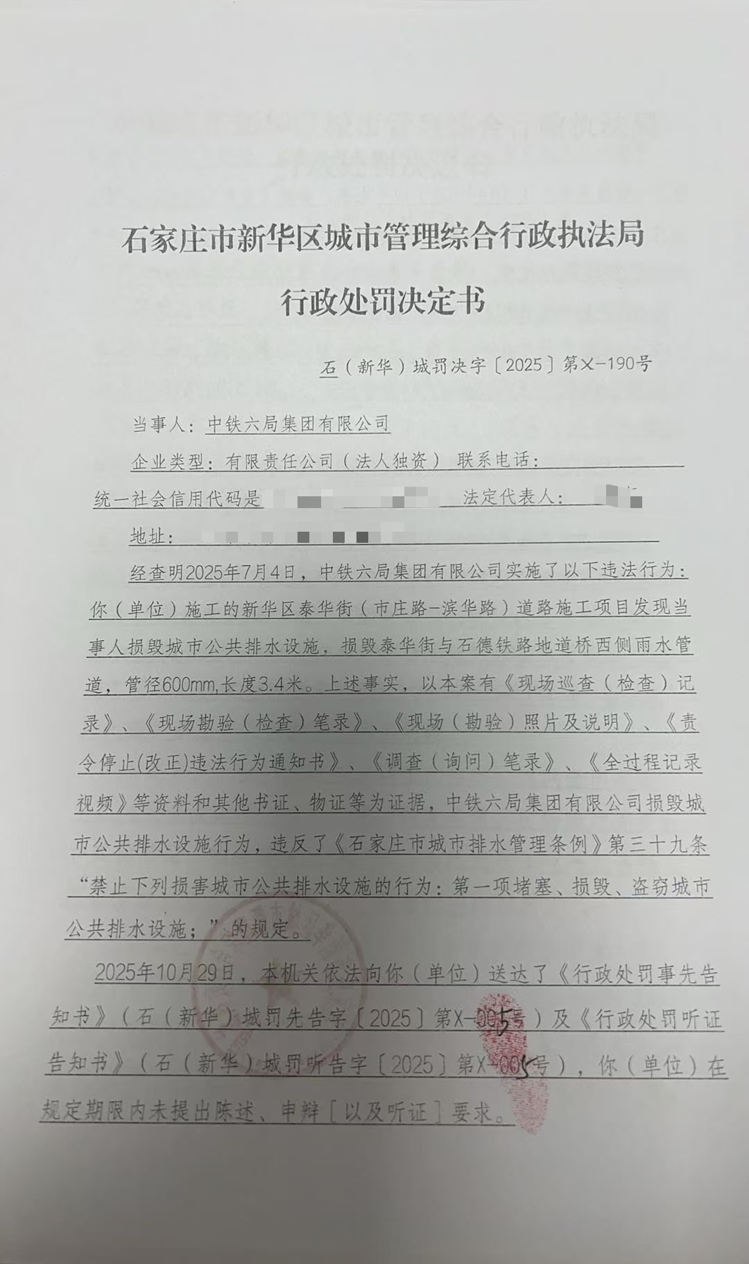 2025行政处罚决定书 190