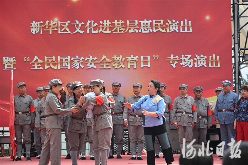 活动现场融合文艺表演与安全宣传,形式新颖、亮点纷呈。国家级非物质文化遗产代表性项目蔚县剪纸传承人团队带来国安主题剪纸作品展示,以非遗技艺传递安全理念,让传统文化与国家安全宣传深度融合。随后《十送红军》《红梅赞》《映山红》《穆桂英挂帅》等红色经典节目轮番上演,合唱《我和我的祖国》深情激昂,宣传活动以群众喜闻乐见的方式弘扬家国情怀,赢得现场阵阵掌声。