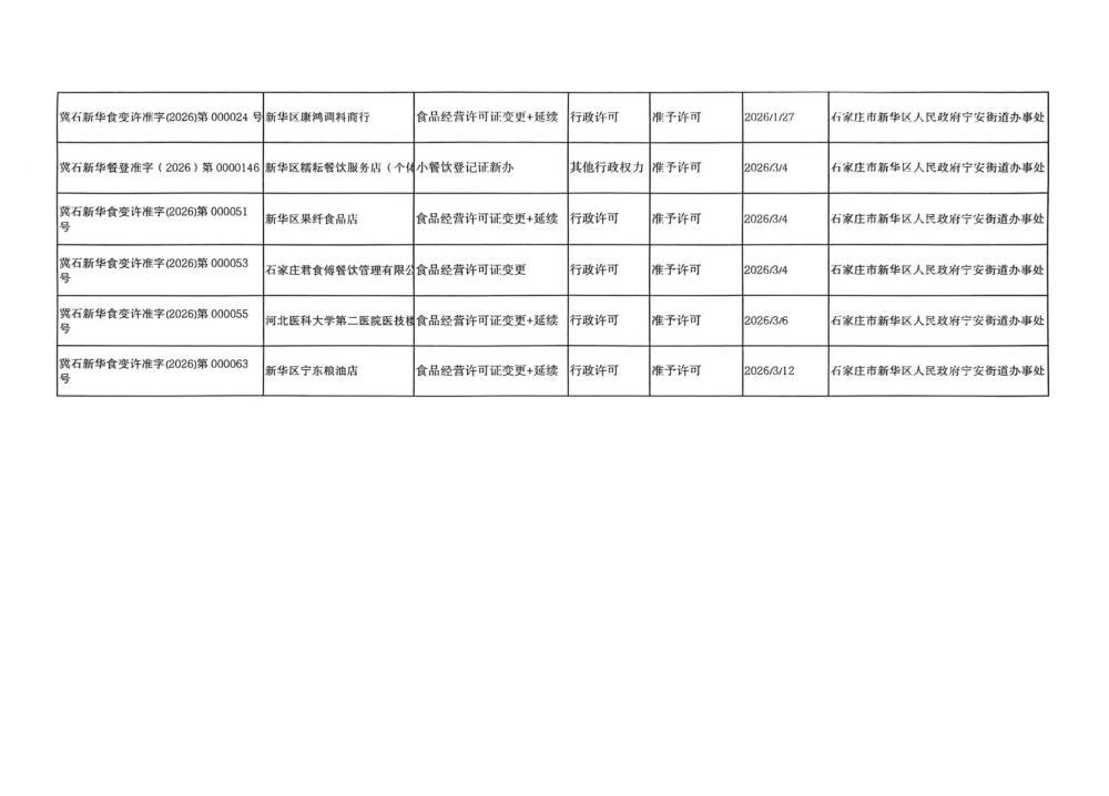 宁安街道办事处许可结果办件公示(2026年1月27日至3月12日)