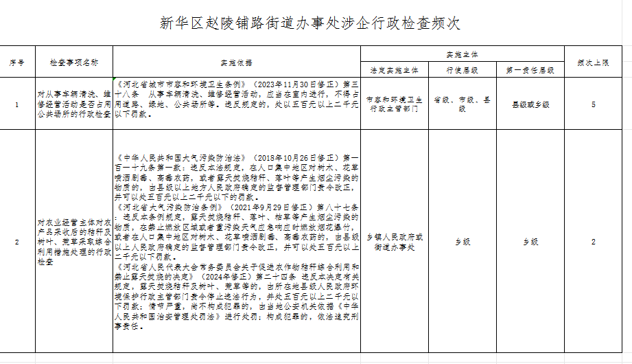 赵陵铺路街道涉企行政检查频次