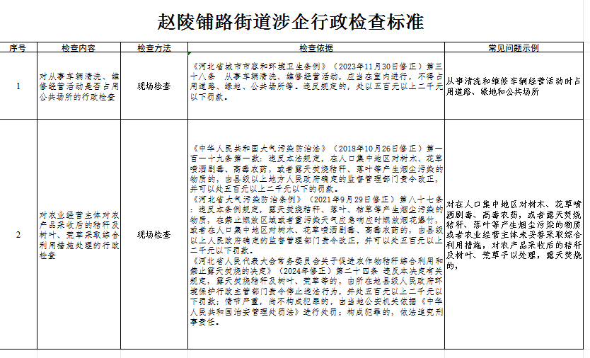 赵陵铺路街道涉企行政检查标准