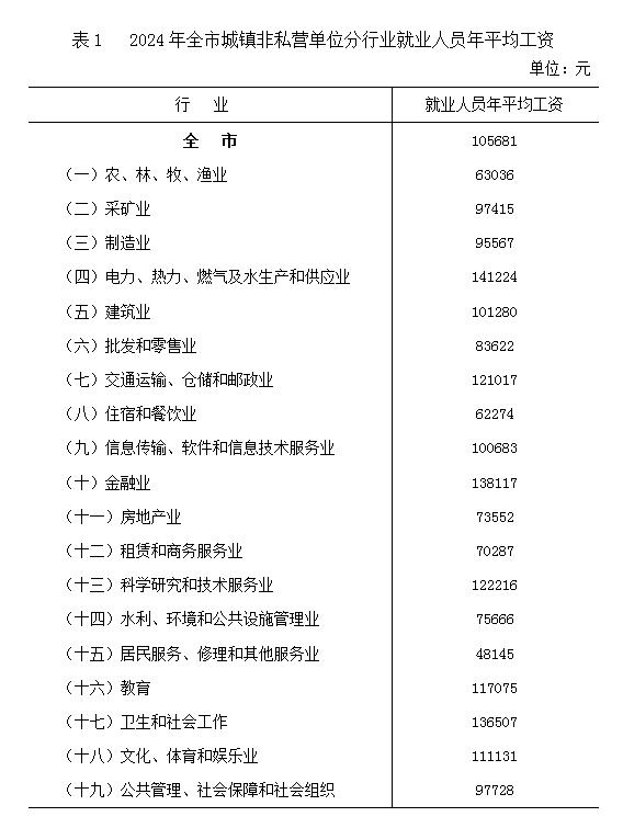 2024年,全市(不含辛集市,下同)城镇非私营单位就业人员年平均工资为105681元,比上年增加3001元,增长2.9%。其中在岗职工年平均工资为107290元,比上年增加2508元,增长2.4%。