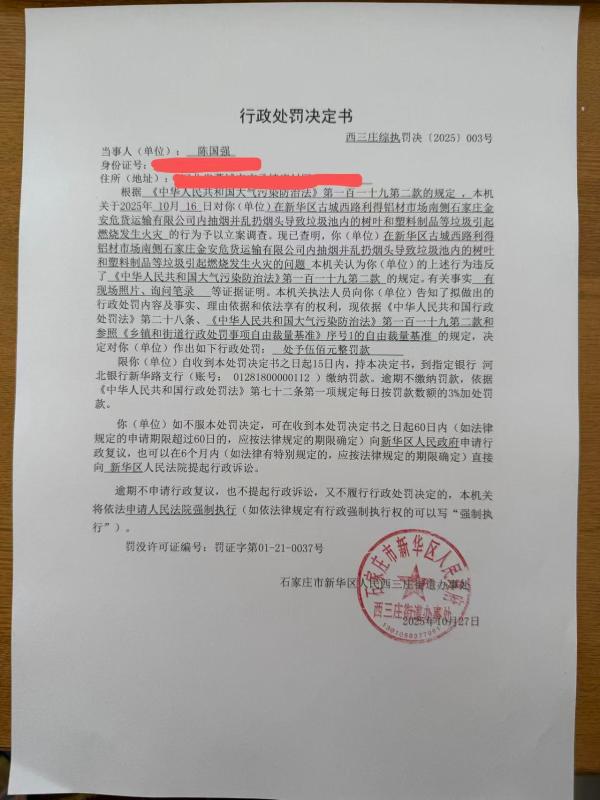 西三庄街道办事处2025年10月27日行政处罚事后公开